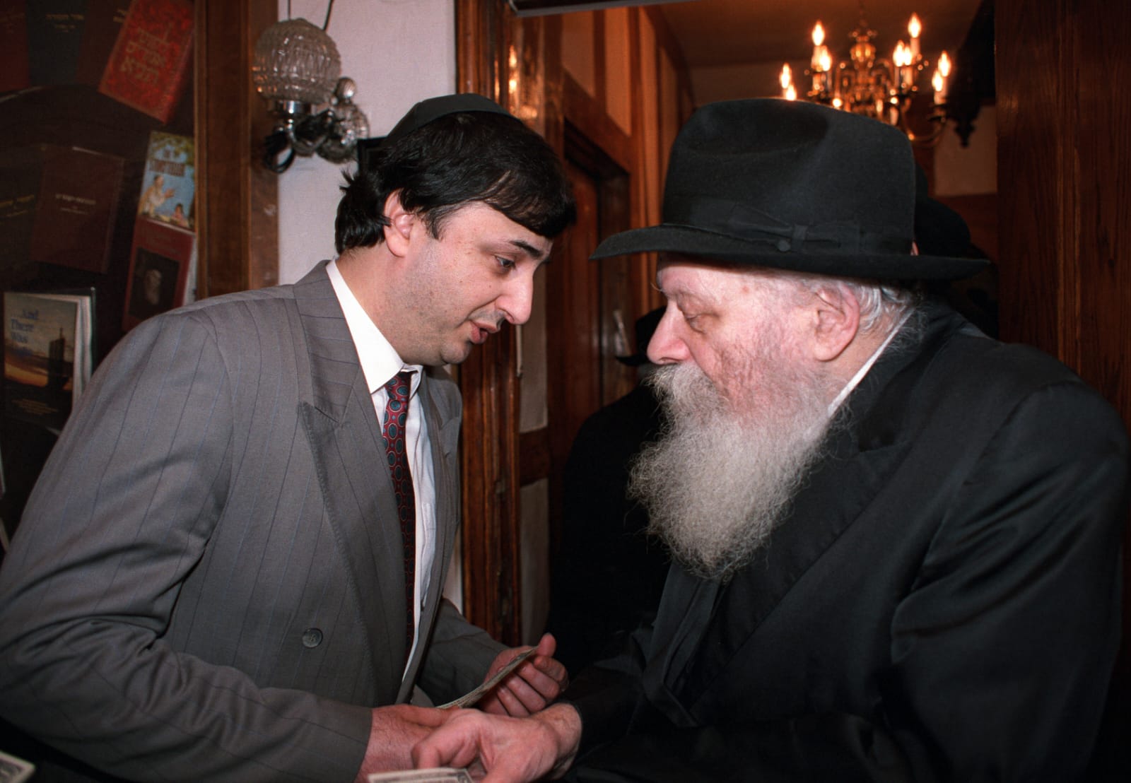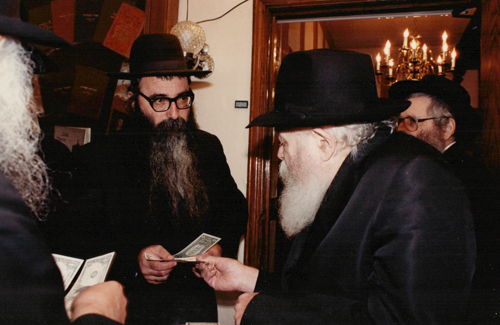 הרב טובי' פלס בקבלת דולר לברכה נוסף מהרבי