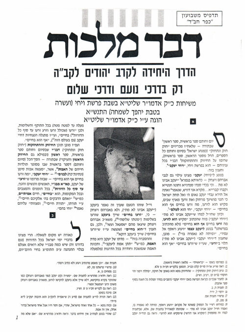 שער הדבר מלכות הראשון, צילום מתוך עיתון כפר חב"ד